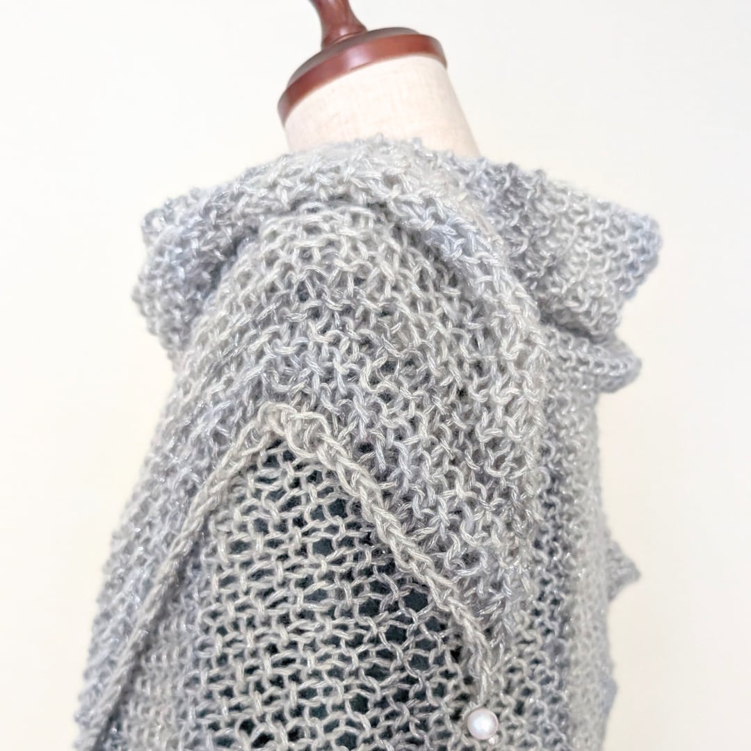 ライトグレーとダークグレー、シルバーグレーのグラデーションカラーは、どんなコーディネートにも自然になじみます。さらに、さりげない銀色のラメ糸が、光や動きに合わせて上品なきらめきを演出。特別な日にも、普段使いにもぴったりです。